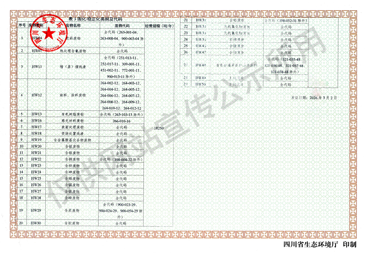 我公司可處置的危險廢物類別為:HW01醫(yī)療廢物、HW02醫(yī)藥廢物、HW03廢藥物藥品、HW04農(nóng)藥、廢物、HW05木材防腐劑廢物、HW06廢有機溶劑與含有機溶劑廢物、HW07熱處理含氰廢物、HW08廢礦物油與含礦物油廢物、HW09油/水、查看全文